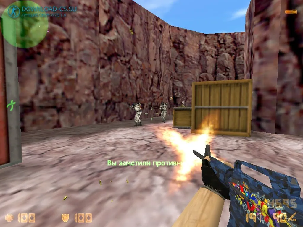 Модели оружия обновлены: каждый ствол получил насыщенные цвета, выразительные текстуры и более чёткую визуальную подачу. Рука держателя выполнена в классическом стиле, прицелы и позиции оружия настроены так, чтобы обеспечить удобную стрельбу на любых картах. Игроки и боты также получили новые модели — читаемые, выделяющиеся и заметные в бою.