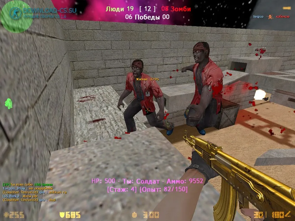По технической части версия включает режимы зомби-мода — заражение, выживание, специальные карты — плюс поддержка ботов и настройка под онлайн-серверы. Модели игроков и оружия были переработаны, интерфейс русифицирован, конфиг готов к запуску. Механика выживания расширяет привычную игру: теперь всё зависит не только от стрельбы, но и от умения скрываться, быстро реагировать и держаться до конца раунда.