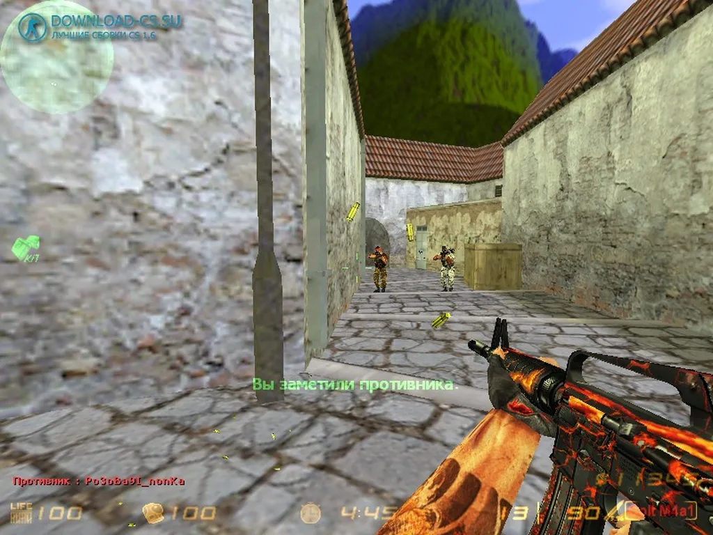 Внутри установлены мощные модели оружия с лавовыми раскрасками, кастомные перчатки, обновлённые модели игроков и приятные звуки стрельбы. Бои ощущаются динамичнее, а анимации перезарядки смотрятся выразительно. На картах присутствуют улучшенные элементы: чёткие текстуры, насыщенные оттенки, аккуратный HUD и зелёные подсказки, которые не мешают геймплею. Боты работают стабильно и адекватно реагируют на окружение.