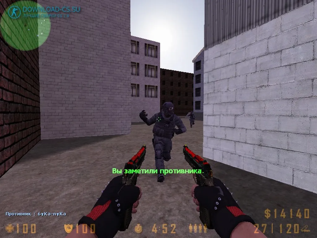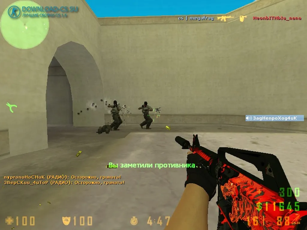 CS 1.6 MegaFrag — это сборка, созданная для игроков, которым нужна динамика, четкая картинка и современный набор моделей без потери классической атмосферы. Меню выполнено в стиле боевого шутера: на фоне спецназовец с пистолетом, расфокусированный задний план и плотные тени создают ощущение предстоящей операции. В игре вас встречают обновлённые руки, тактические перчатки, улучшенные прицелы и яркие скины оружия — аккуратные, контрастные, хорошо читаемые даже в движении.