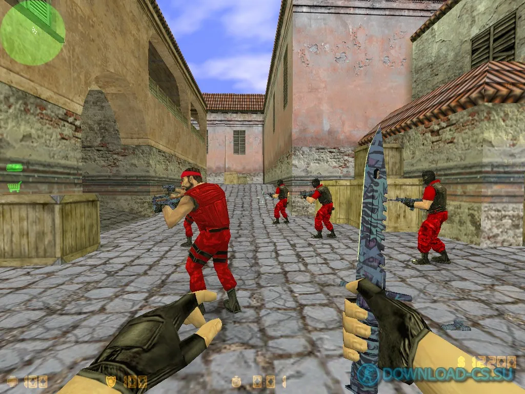 Модели игроков также переработаны: контр-террористы выполнены в синей палитре, террористы — в красной. В HD-режиме террористы отображаются в виде “Фениксов”, что делает их узнаваемыми на больших дистанциях. Оружие, руки и отдельные элементы интерфейса получили аккуратные обновлённые текстуры, вдохновлённые CS:GO Phoenix Marker. При этом механика игры полностью соответствует классической CS 1.6, без изменений в балансе или геймплее.