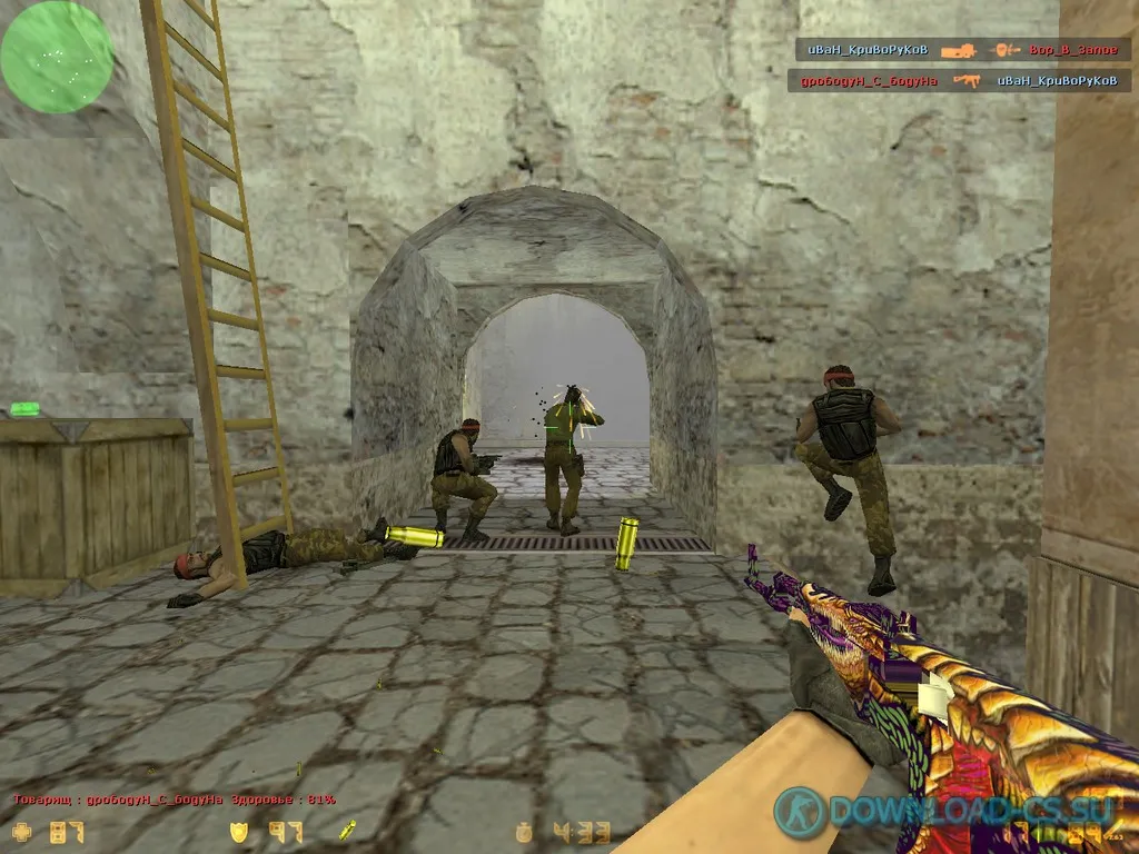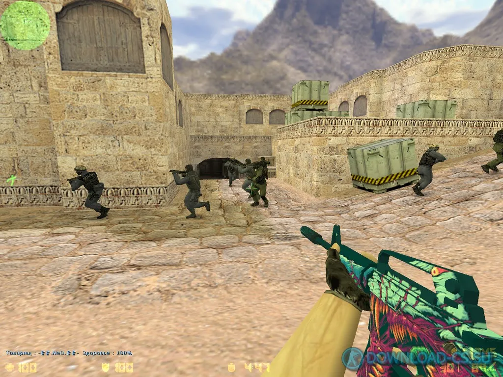 Одной из ключевых особенностей являются скины оружия: на стандартных моделях установлены декоративные оформления, вдохновлённые CS2. Заметно обновлены звуки и музыка в меню, значок запуска заменён на фирменный. При этом модели игроков, карты и конфиг остались близки к оригиналу, чтобы механика игры не изменилась — просто визуальный уровень стал выше.