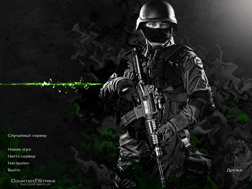 Главное меню CS 1.6 NewStyle оформлено в тёмно-зелёной палитре с акцентом на спецназовца в совремённом снаряжении — стиль напоминает тактические игры нового поколения. Общая атмосфера стала более контрастной: насыщенные цвета, аккуратные анимации и читаемые элементы интерфейса задают ощущение обновлённой классики, при этом сохраняя знакомый дух старой доброй CS 1.6.