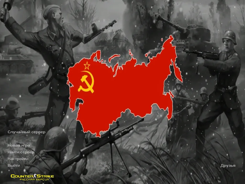 Сборка CS 1.6 I Love CCCP выполнена в ярко выраженной советской стилистике. Главное меню оформлено в военной тематике, центральное место занимает красная карта СССР с символикой серпа и молота, а интерфейс выдержан в строгих тонах. Всё это создаёт атмосферу альтернативной версии Counter-Strike 1.6, где традиционный стиль заменён исторической тематикой.
