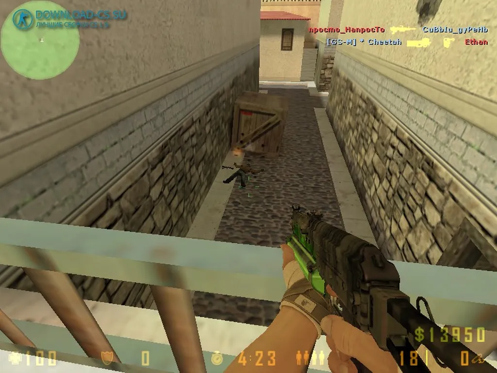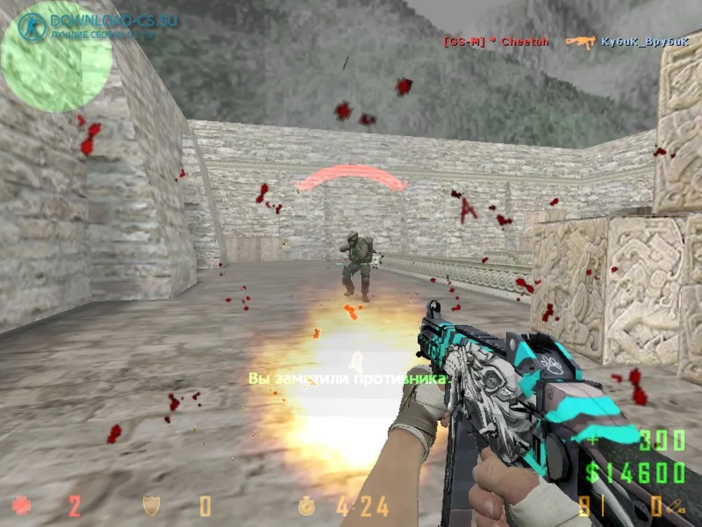Сборка CS 1.6 от Читана сразу заметна своим оформлением: оружие получило 27 новых скинов, добавлены перчатки «Обмотки рук | Кожа», модели игроков окрашены красными и синими цветами, меню выдержано в тёмной теме. Всё это создаёт ощущение обновлённой версии игры, где классика сочетается с визуальными решениями из CS:GO.